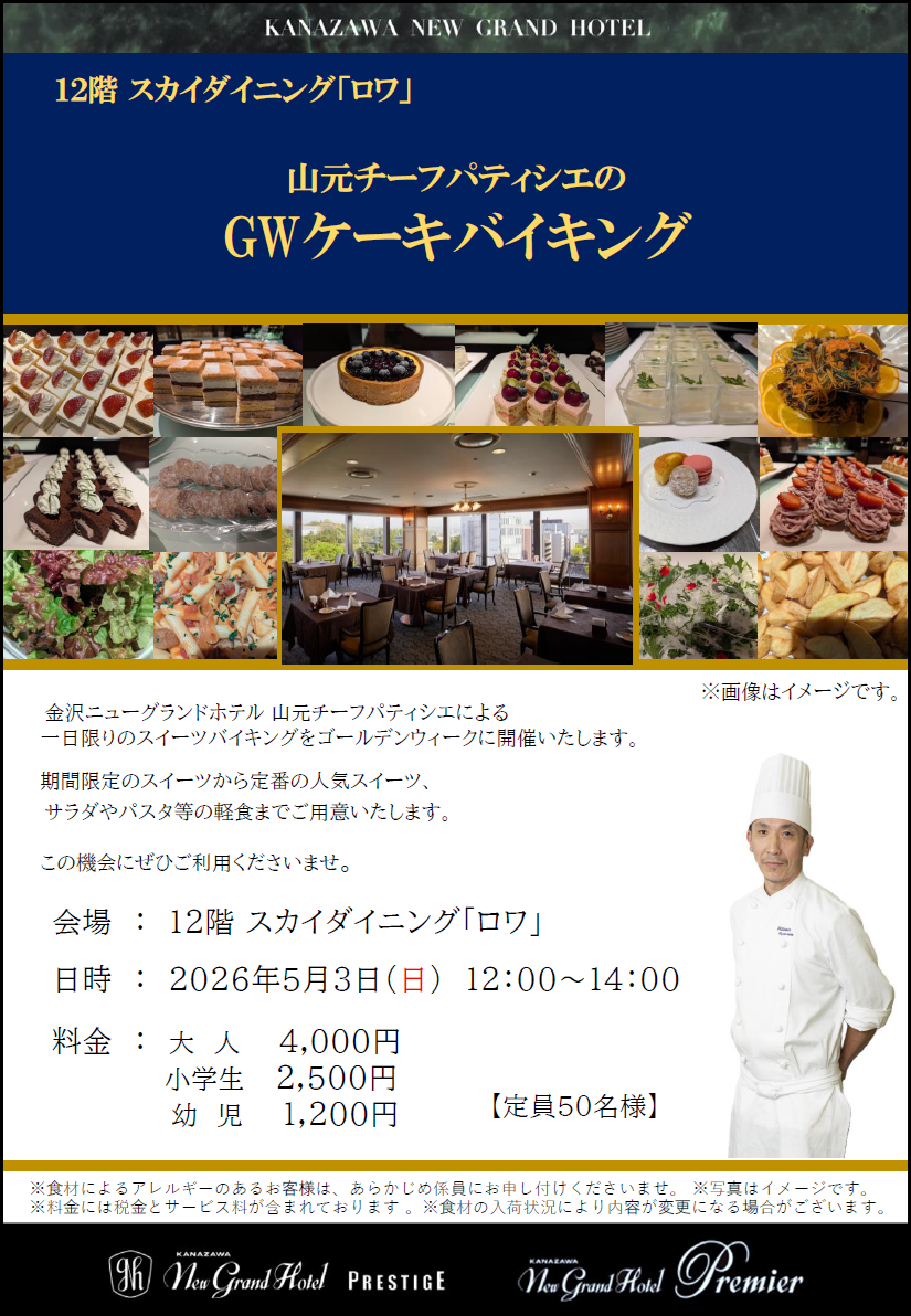5月3日(日)のランチタイムにケーキバイキングを開催いたします。