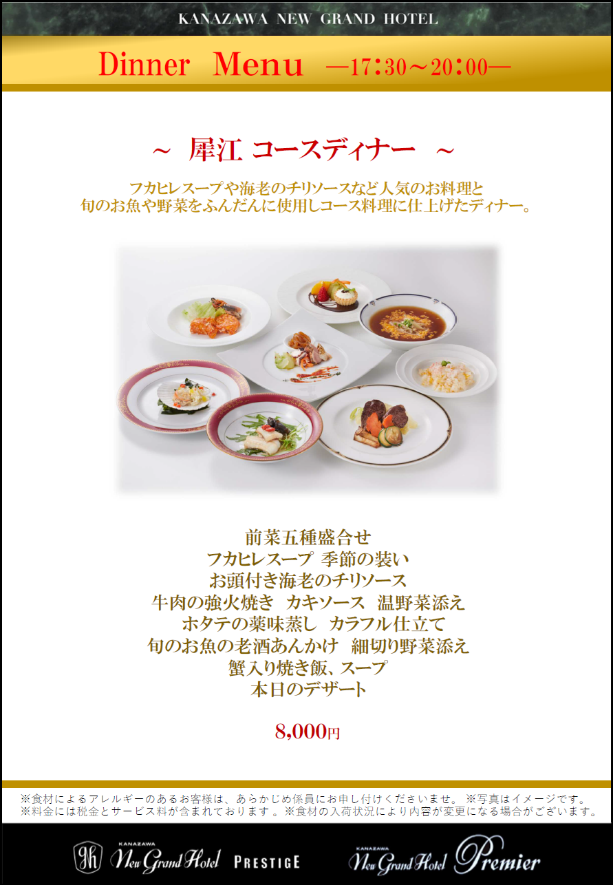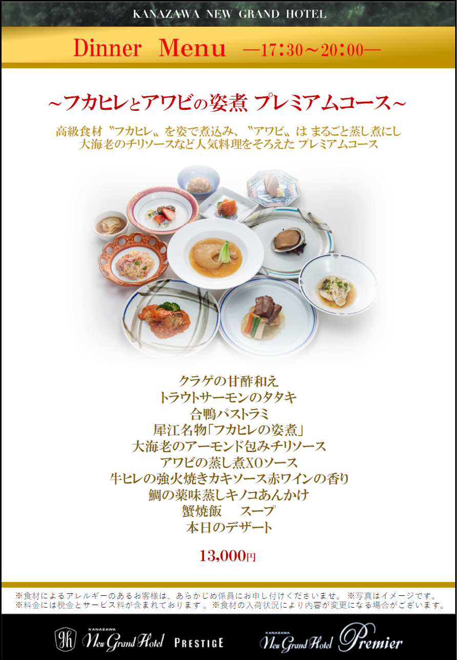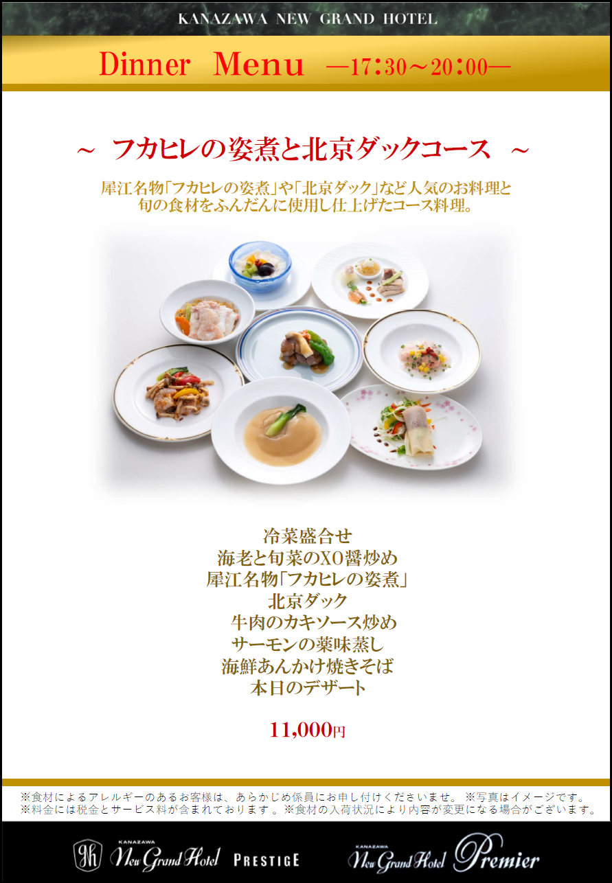 ※その他、コース料理はお一人様10,000円込にて承ります。(要予約)